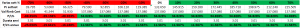In base alle quotazioni attuali del sottostante WO, ed un prezzo lettera (=di acquisto per l’investitore) di circa 101,69 euro questo sarebbe il payoff a scadenza (= la struttura di pagamento del contratto, data dal Val Rimb Cert, al variare del valore del sottostante WO dalla quotazione attuale a 0%, dato da Pr Sottost; rosso per decrementi/perdite %, verde per aumenti/guadagni %) a parità di condizioni sull’altro sottostante: