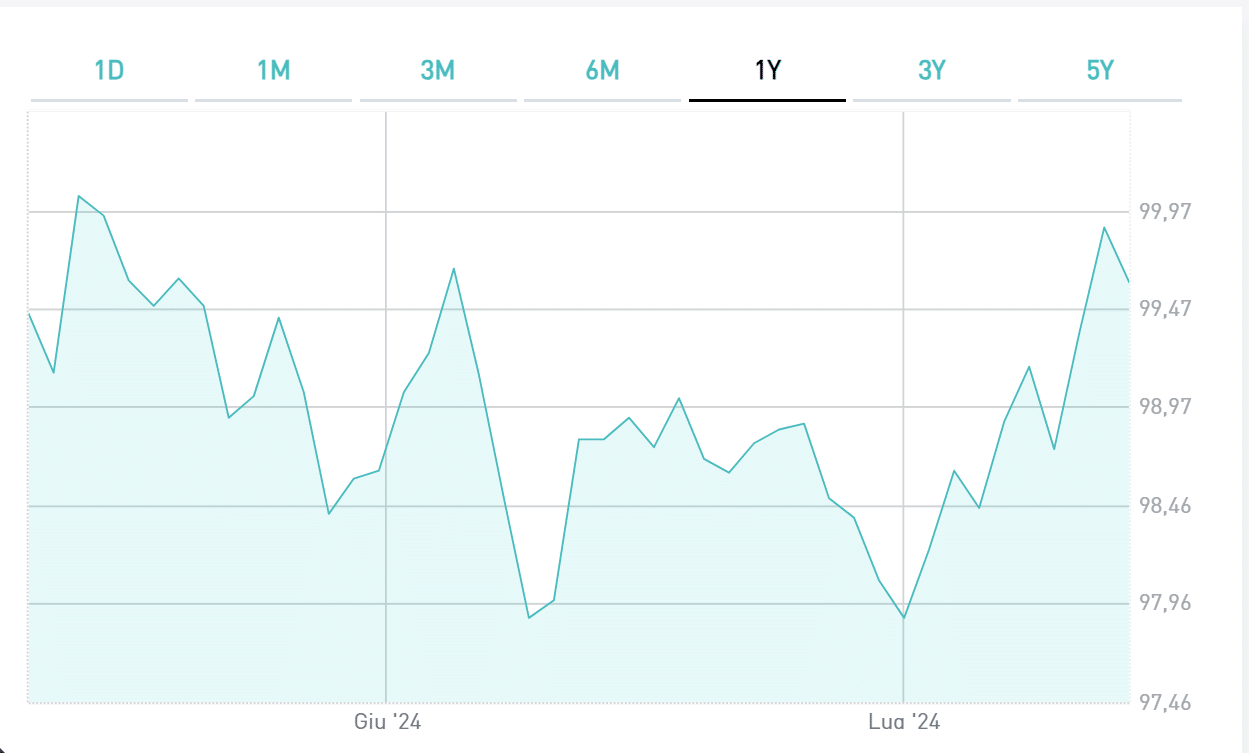 Il bond ha sinora registrato una quotazione minima in data 1 luglio a 97,89 centesimi, rispetto alla quale è risalito già dell’1,75%. La quotazione massima fu toccata, invece, proprio nel giorno dell’emissione a 100,04 sul Mercato obbligazionario Telematico di Borsa Italiana.