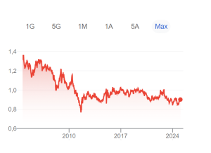 Il cambio era di 1,70 nell’autunno del 2007, mentre oggi risulta di appena 0,94. La valuta elvetica, considerata un “safe asset”, si è apprezzata dell’80% in questi anni contro la moneta unica.